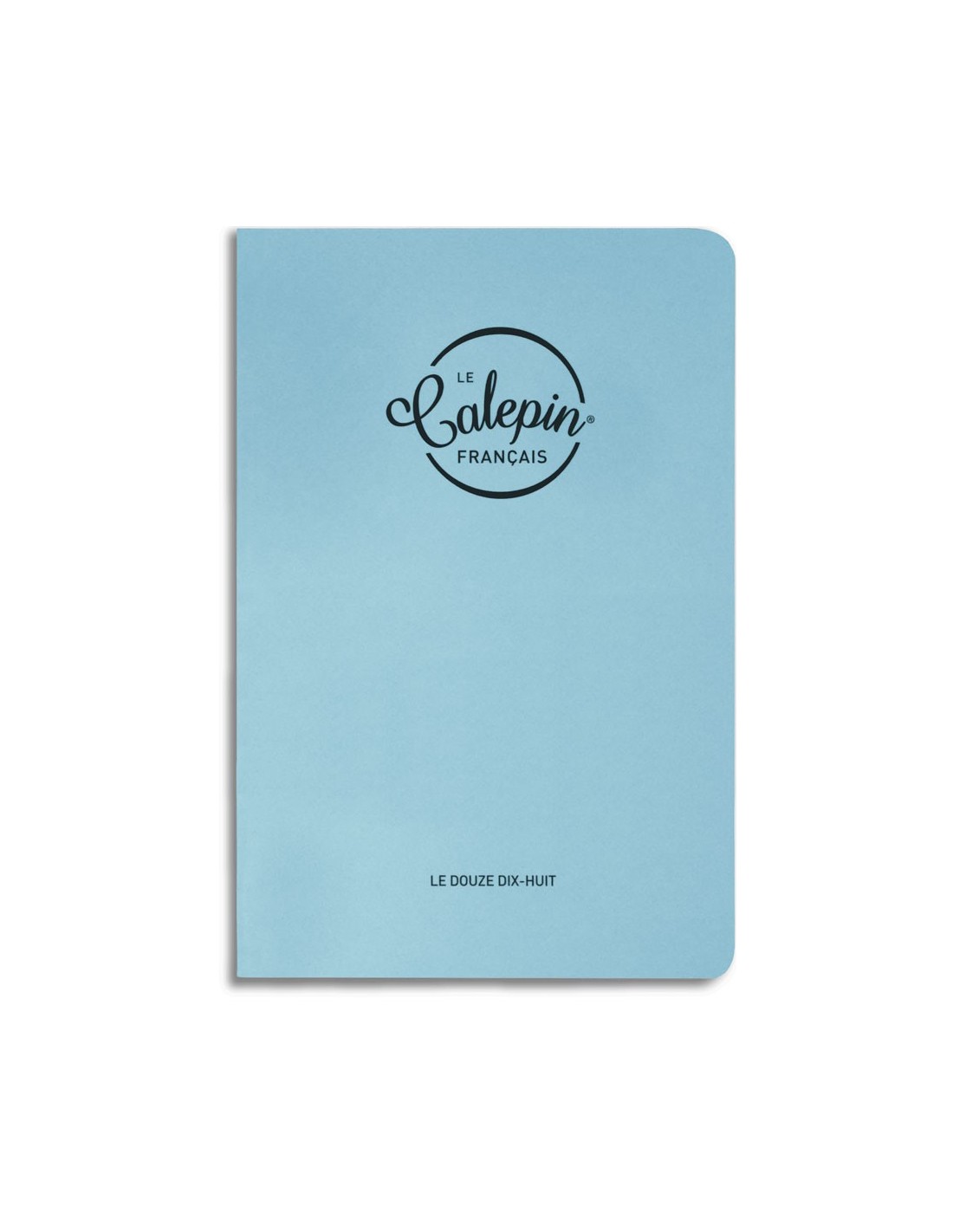 Sur la première page de couverture est imprimée en noir le logo du Calepin Français et le format et au dos « Ce carnet est conçu et imprimé en France » avec notre adresse.
