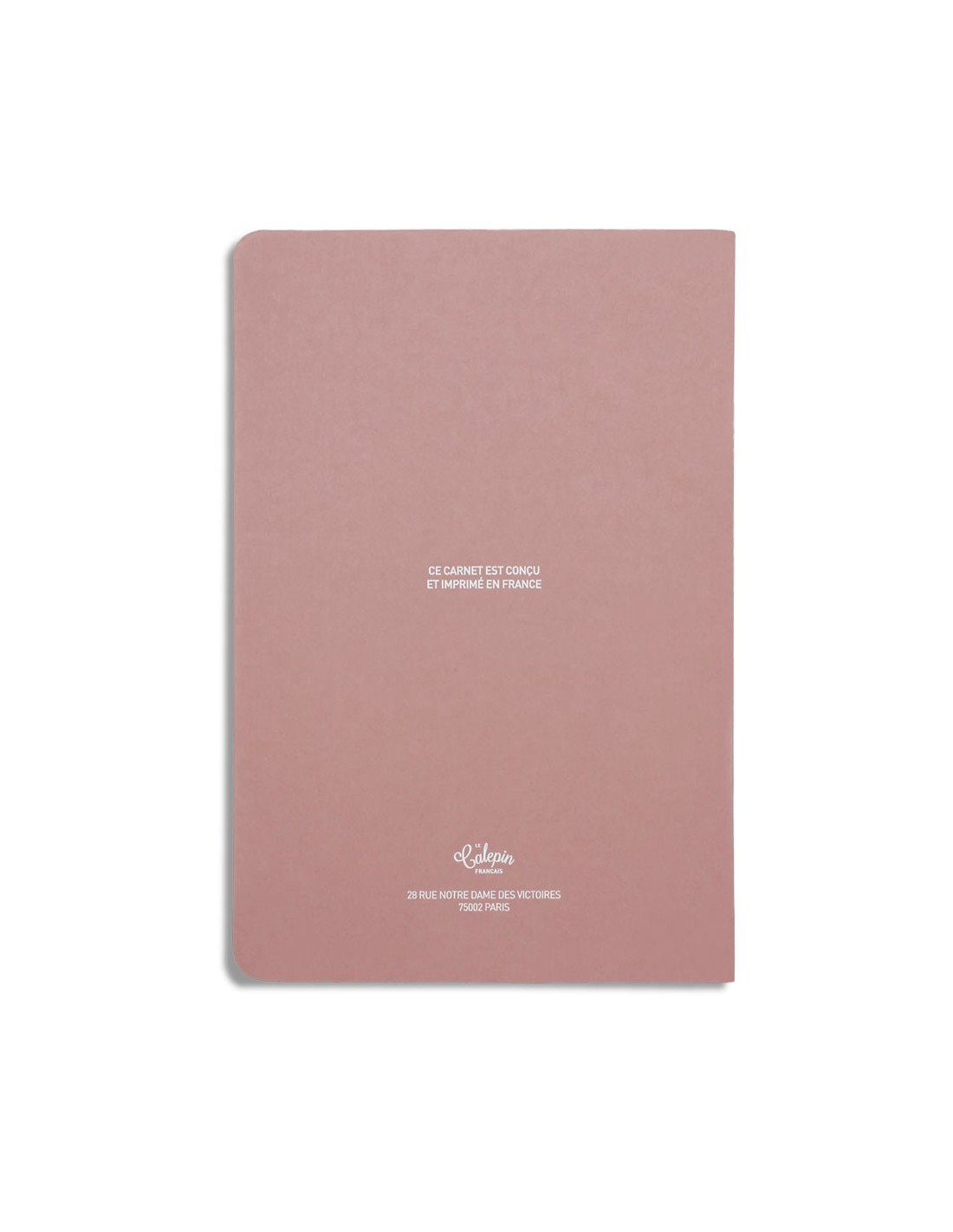 Les couvertures épaisses de 300g/m2 sont proposés dans des nuances de rose, qui colle à toutes les saisons. Un vieux rose qui rappelle le nude des rouges à lèvres et lie de vin d'une grande force, toutes avec une impression blanche et des agrafes blanches.